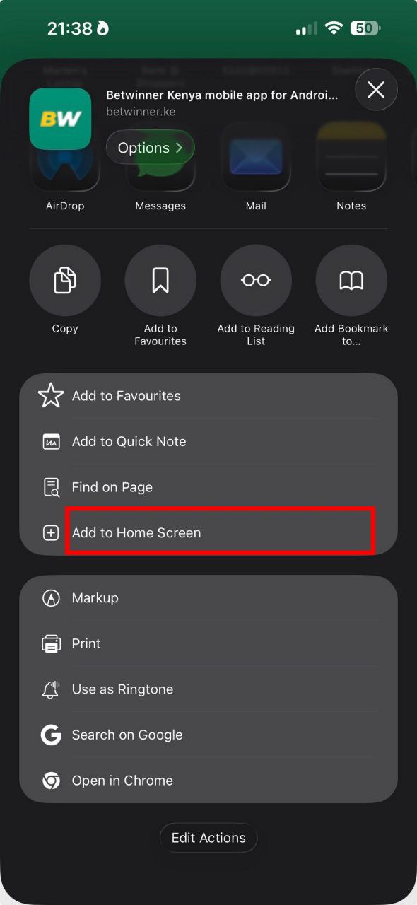 If you’re using Safari (iOS), hit the Share widget after pressing the three dots on the bottom right of the screen. Next, tap the ‘More’ widget and then select ‘Add to Home Screen.’