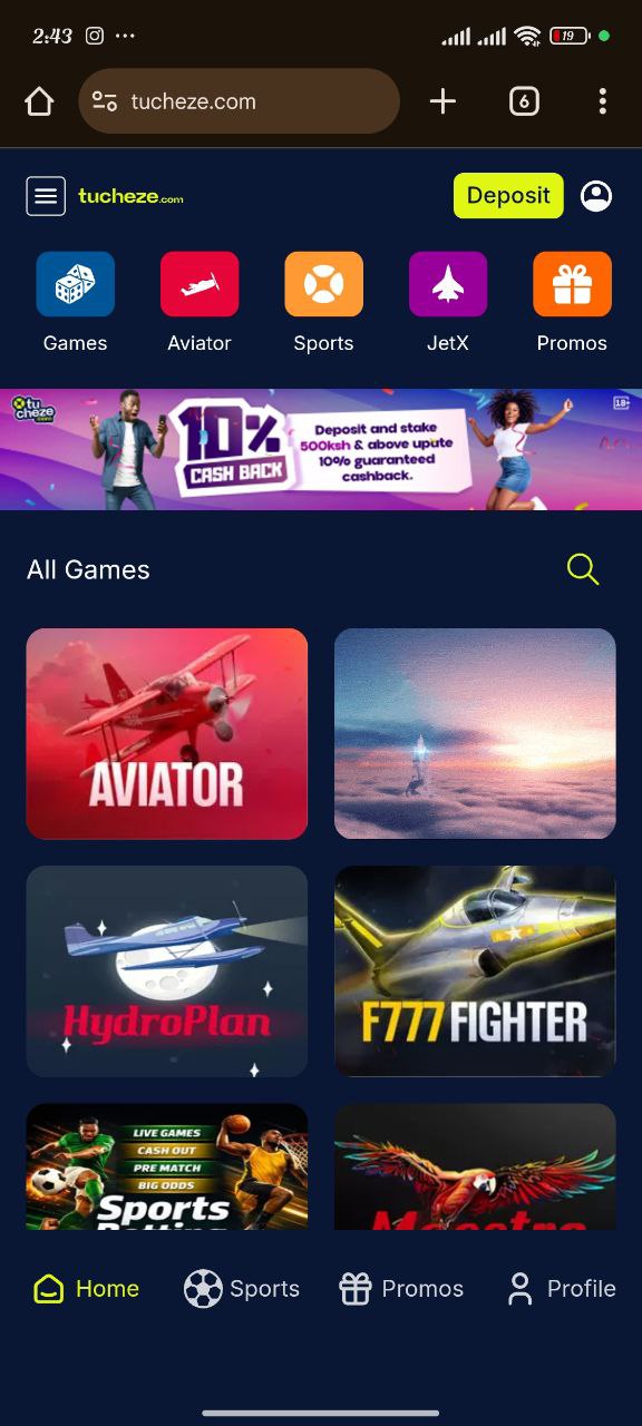 After your Tucheze registration, you can deposit, play the best crash games for real money, and access other elements, including a unique Tucheze bet Sambaza feature that lets players gift their stake to friends on the Tucheze.com website.